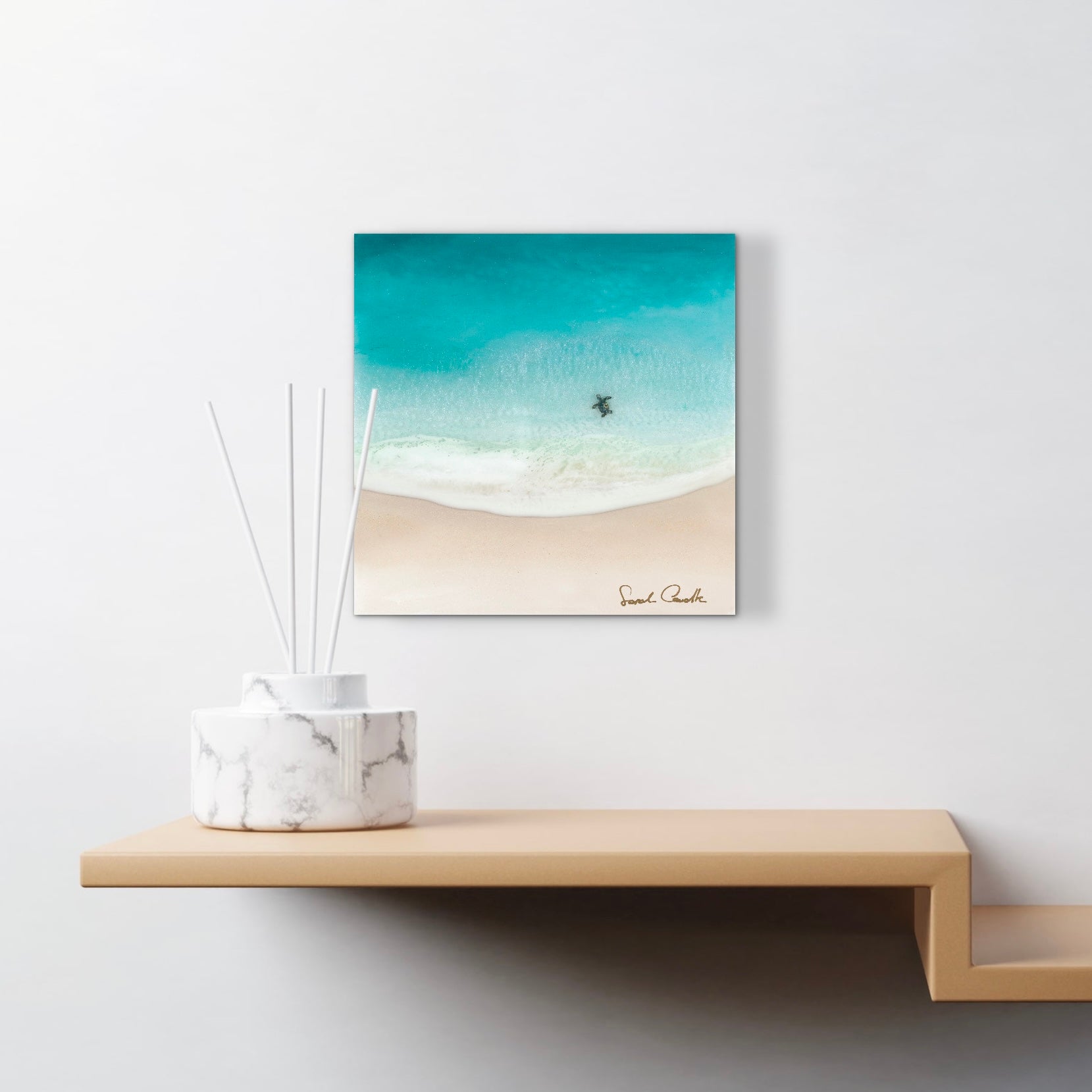 まるでハワイの海をそのまま切り取ったような、透明感あふれる美しいアクリルアート。アーティストSarah Caudleが描く幻想的な海の世界を、高精細にプリントし、上質なアクリルパネルに丁寧に貼り合わせました。
